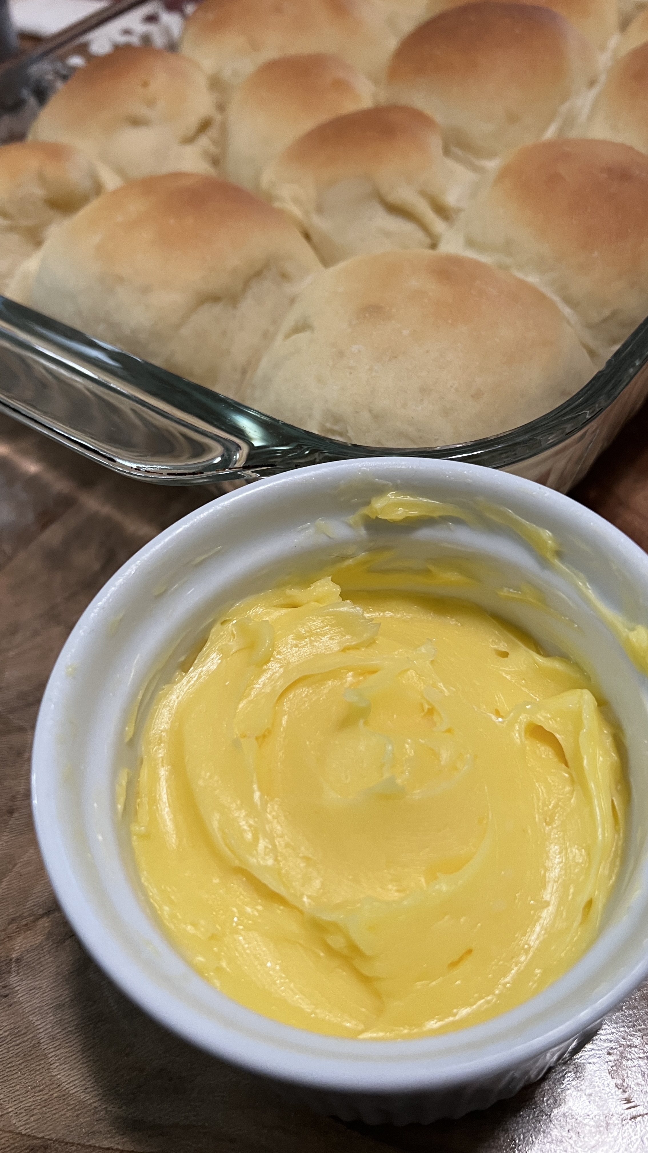 Last night, I used some of that fresh milk to make dinner rolls—the same milk that was still in a cow that morning! Julie made some fresh butter to go with them. With a KitchenAid mixer, it’s loads easier to make butter than with an old-style butter churn.