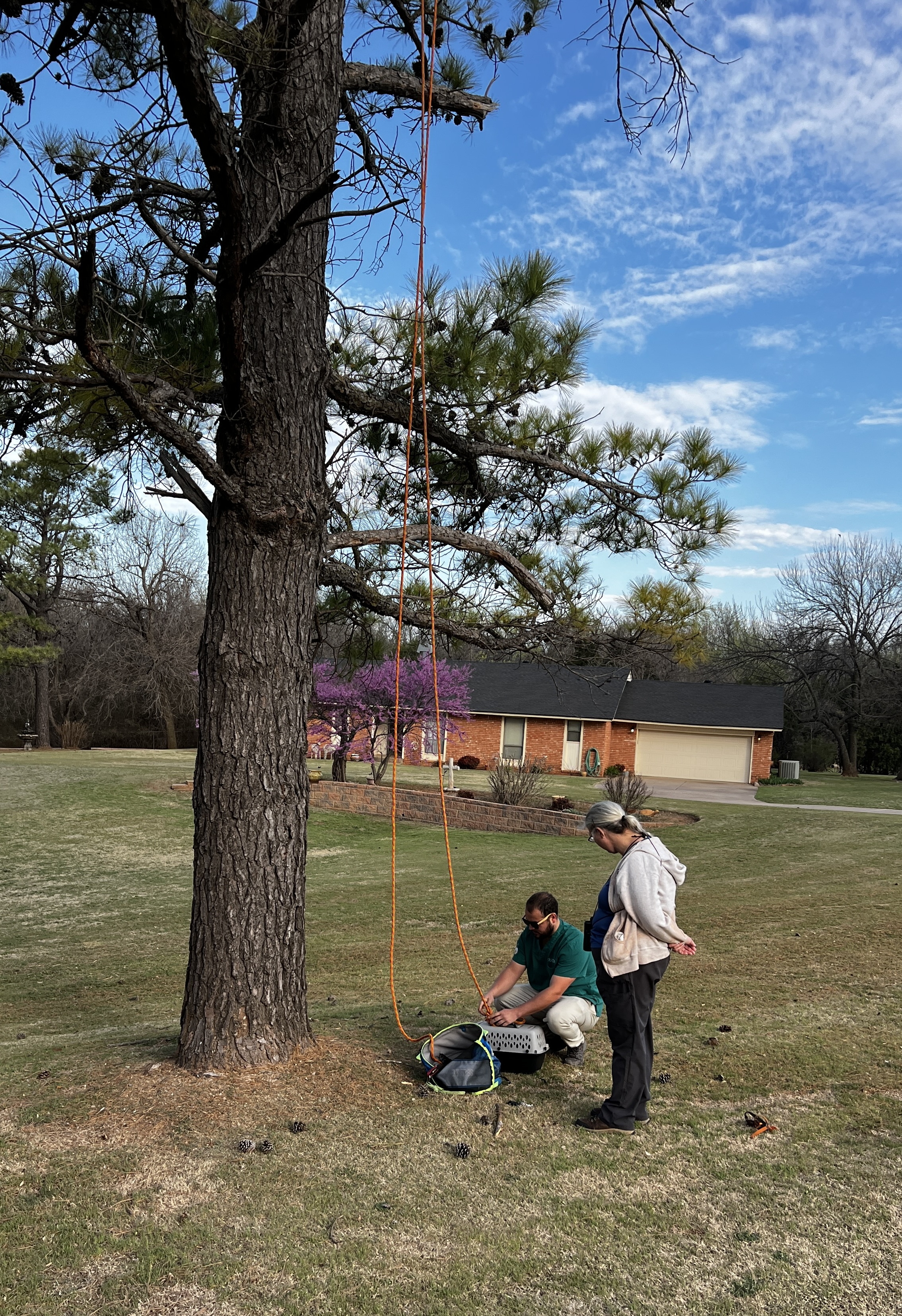 All that being said, we did get a chance for a quick photo during the second renesting when Will (from WildCare) was getting the carrier ready to go up the tree.